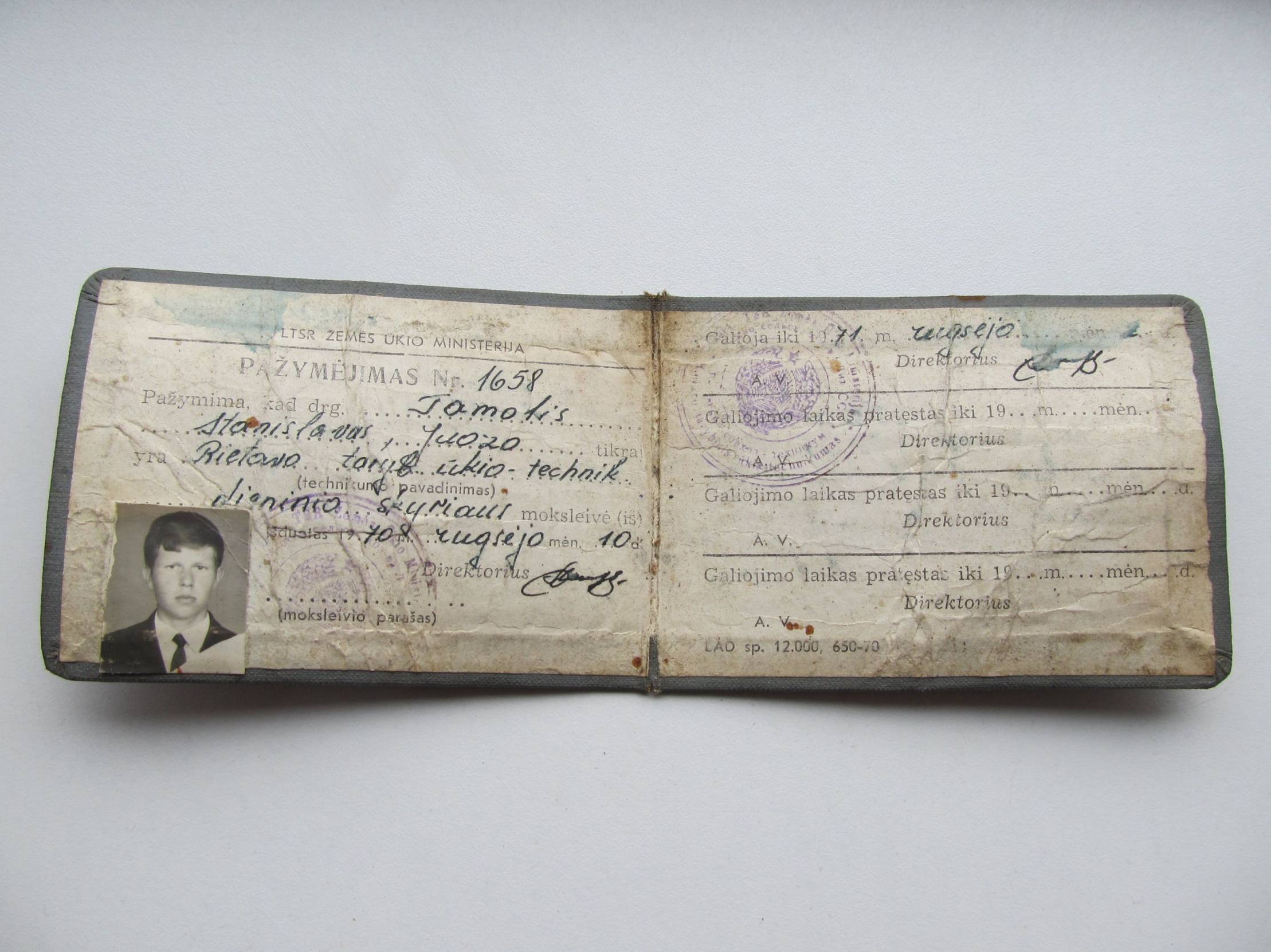 Moksleivio pažymėjimas , 1970