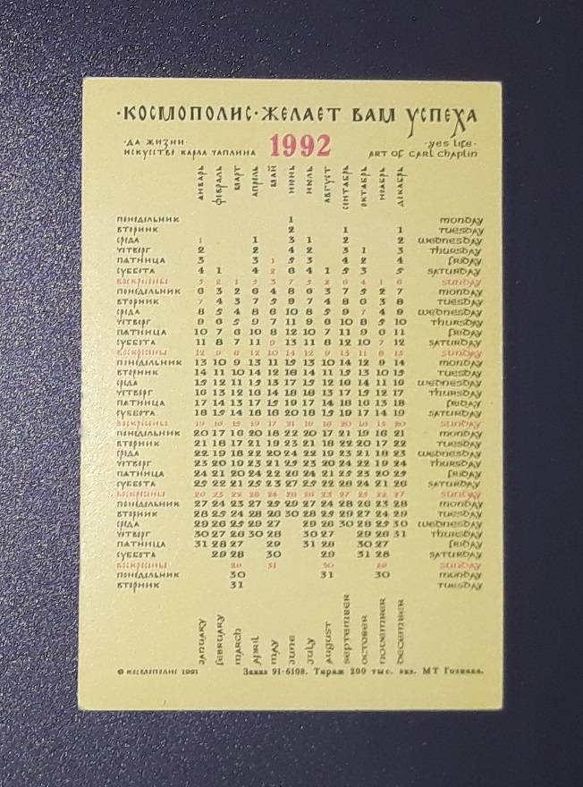 Kalendoriukas Rusija 1992 WILDLIFE 088-2