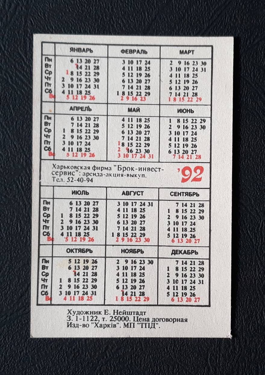 Kalendoriukas Ukraina 1992 Horoskopas =08-2=