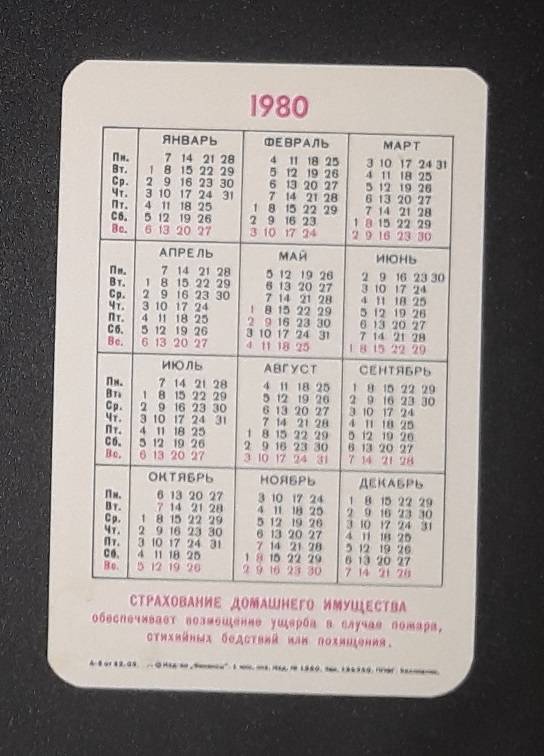Kalendoriukas CCCP 1980 Draudimas 077-2