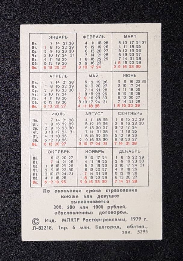Kalendoriukas CCCP 1980 Draudimas 130-2
