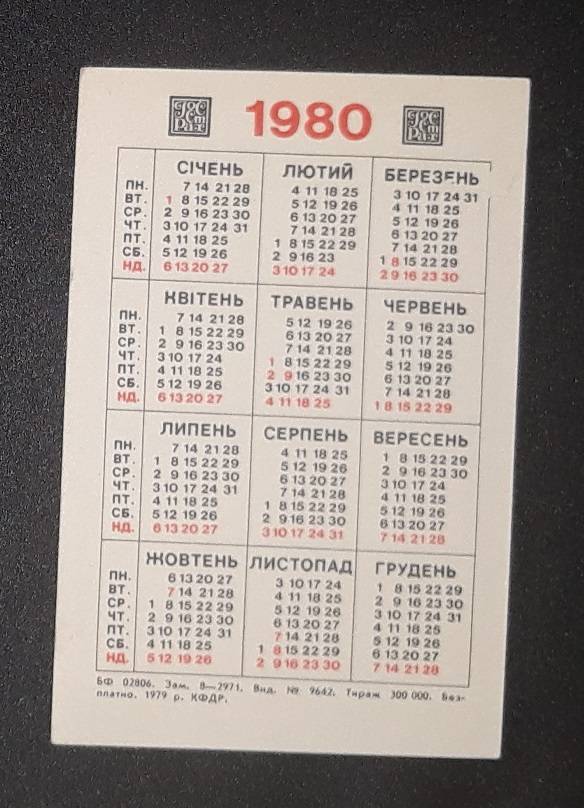 Kalendoriukas CCCP 1980 Draudimas 135