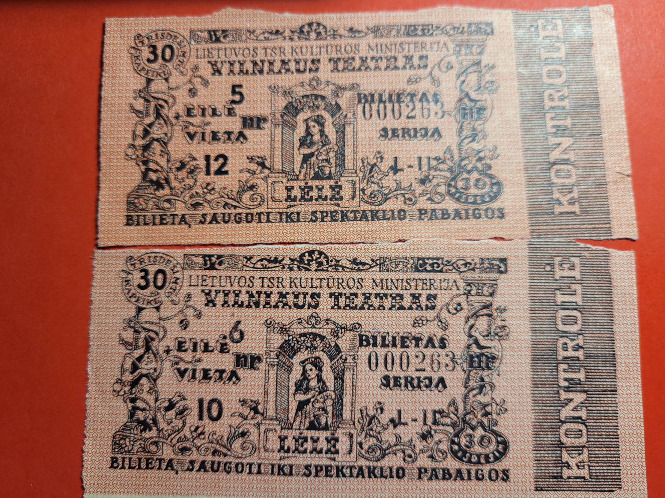 1978 LTSR Vilniaus teatro 2 bilietai su kontrole