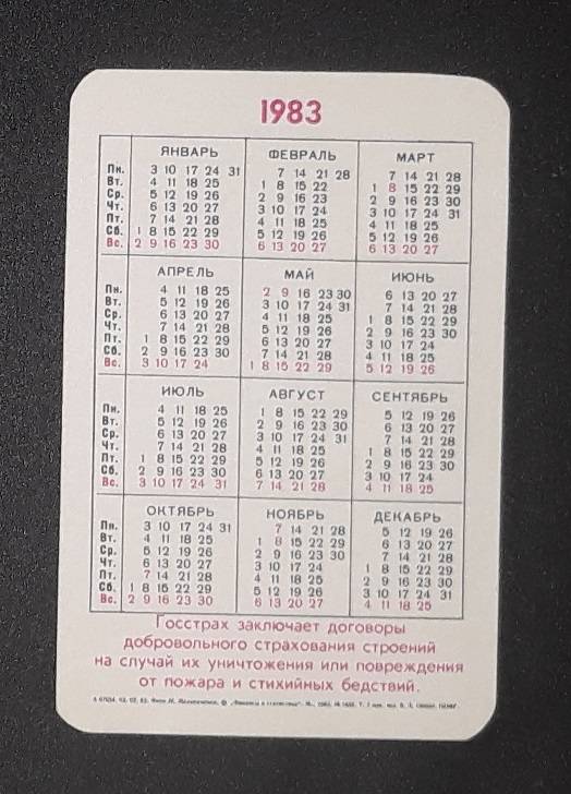 Kalendoriukas CCCP 1983 Draudimas 074-3