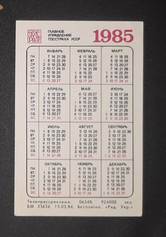 Kalendoriukas CCCP 1985 Draudimas 138