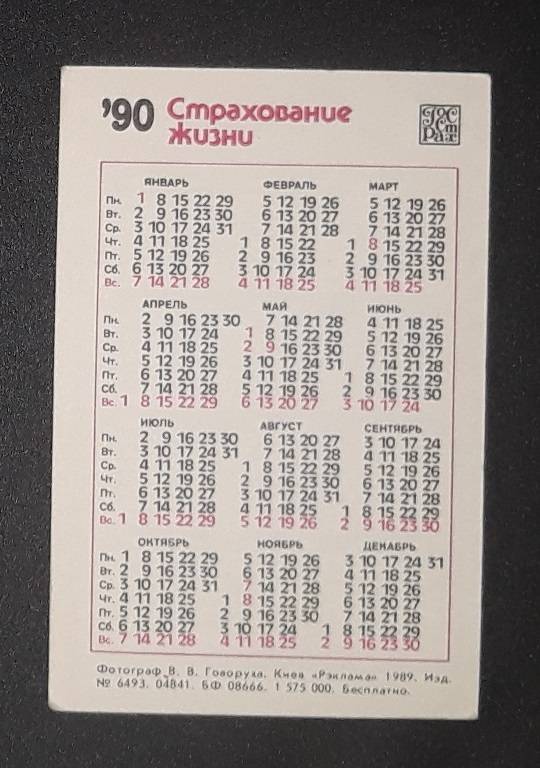 Kalendoriukas CCCP 1990 Draudimas 131-2