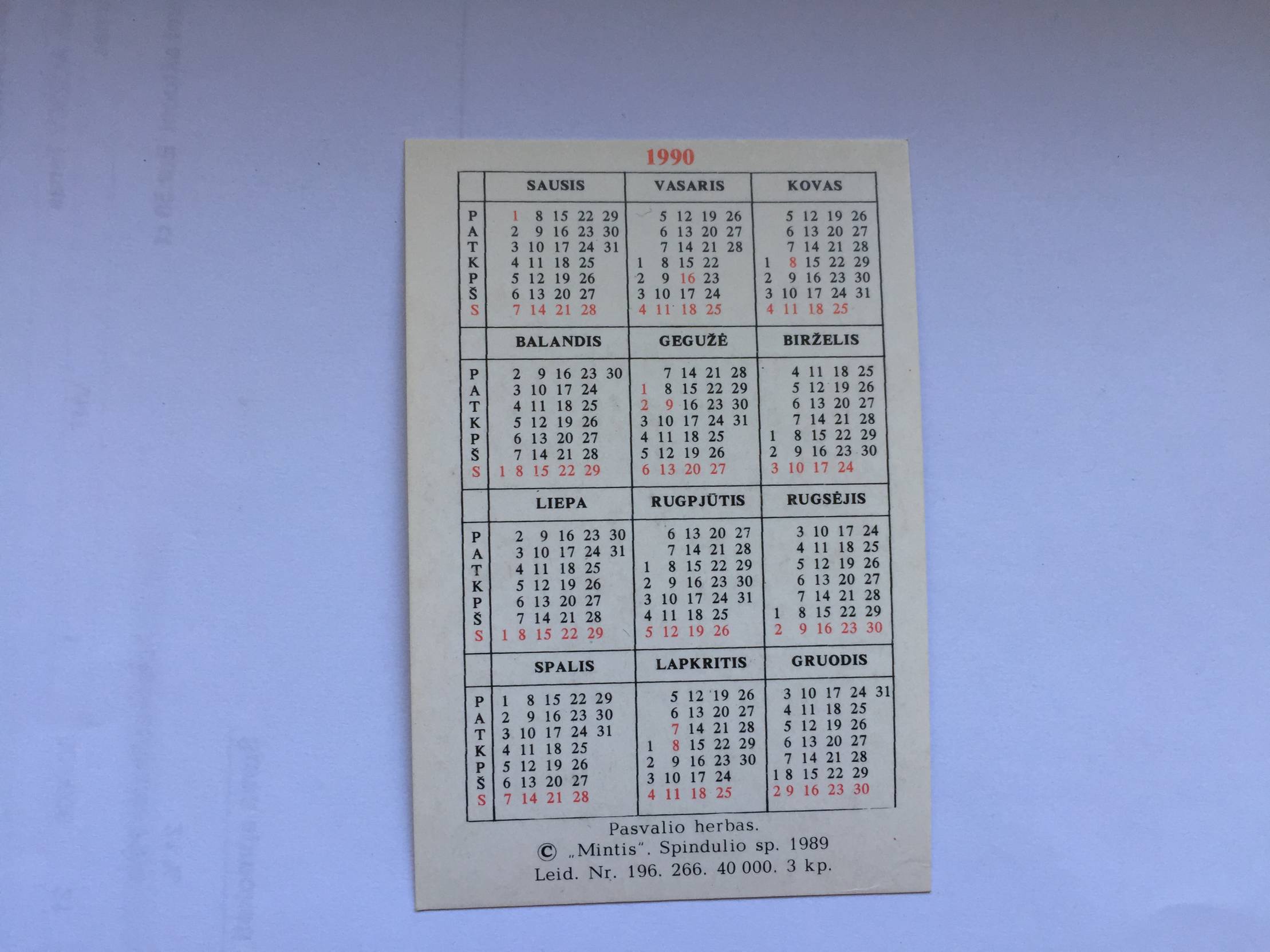 Pasvalys Kalendoriukas 1990m.