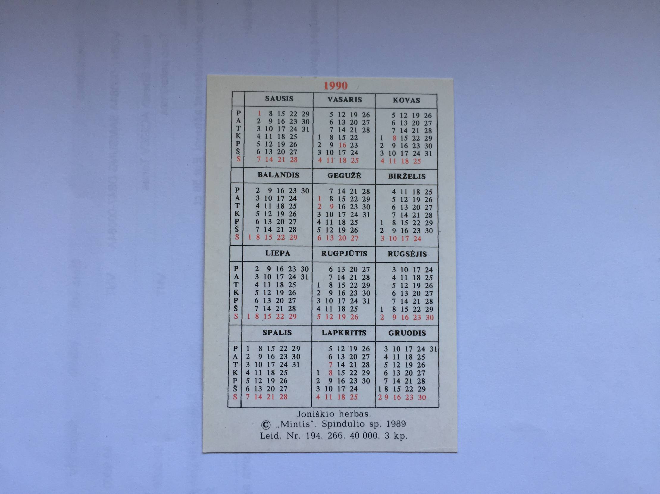 Joniškis Kalendoriukas 1990m.