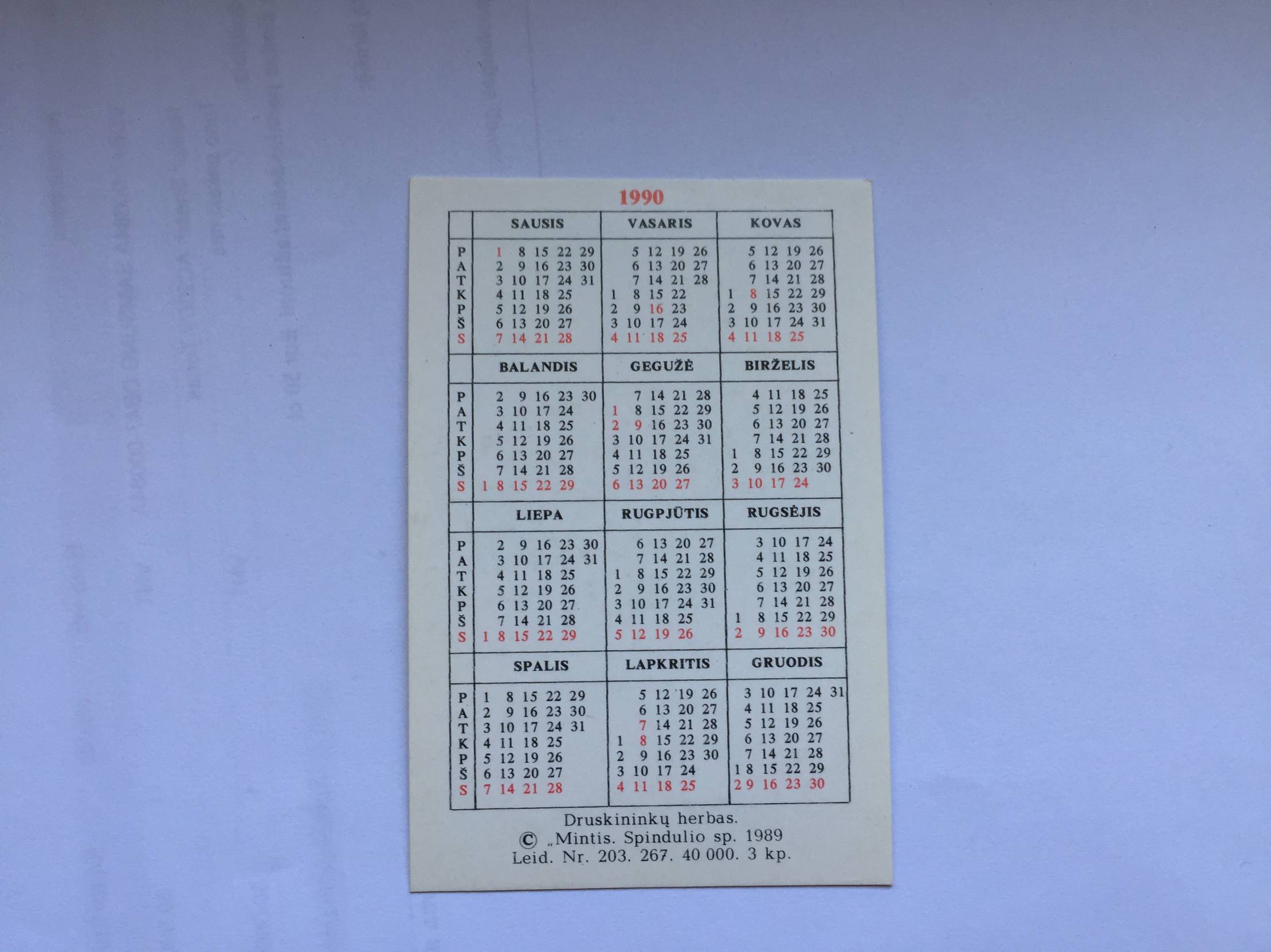 Druskininkai Kalendoriukas 1990m.