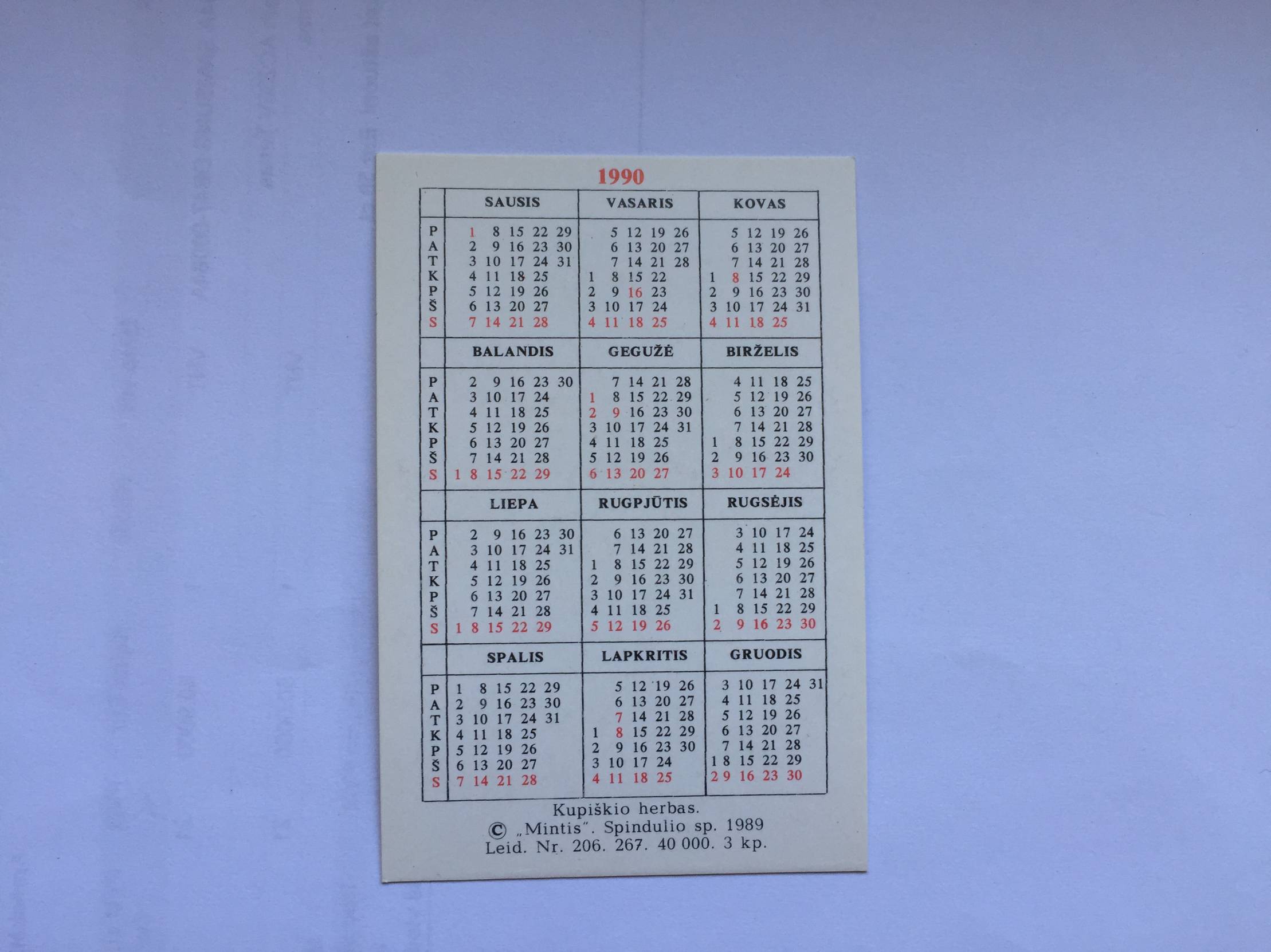 Kupiškis Kalendoriukas 1990m.