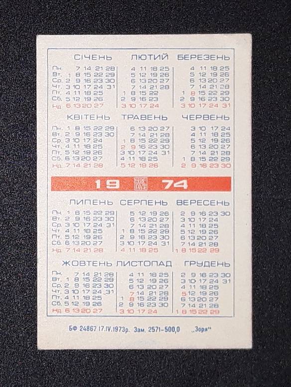 Kalendoriukas CCCP 1974 Draudimas 020r-3