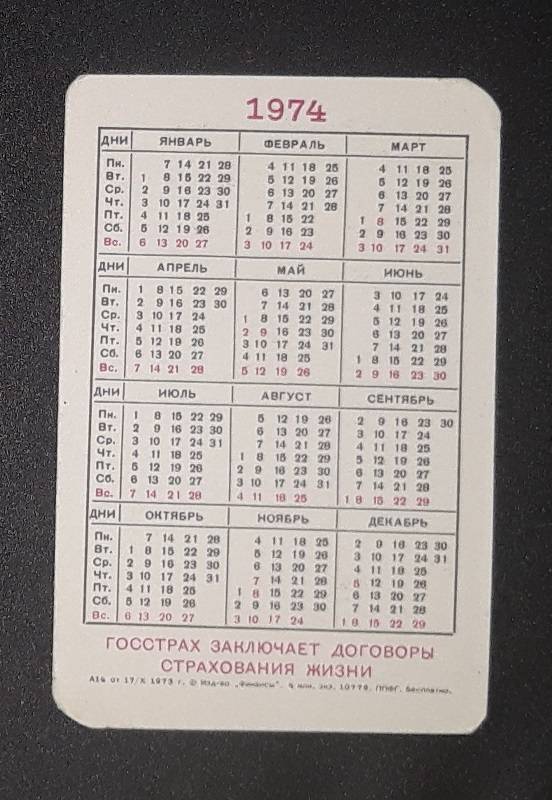 Kalendoriukas CCCP 1974 Draudimas 035