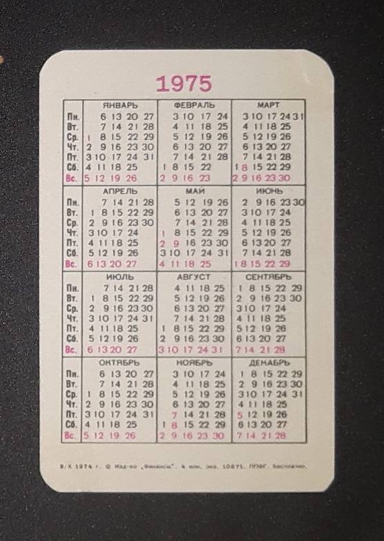 Kalendoriukas CCCP 1975 Draudimas 042-2