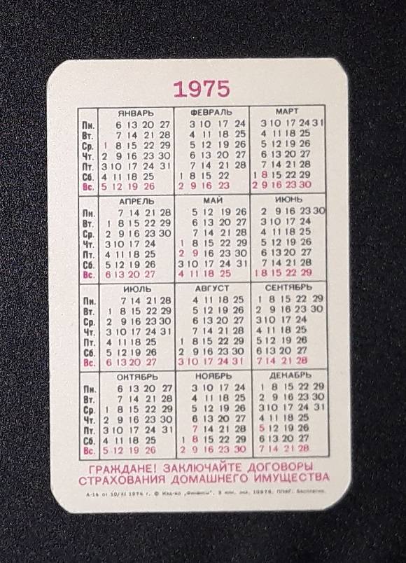Kalendoriukas CCCP 1975 Draudimas 051