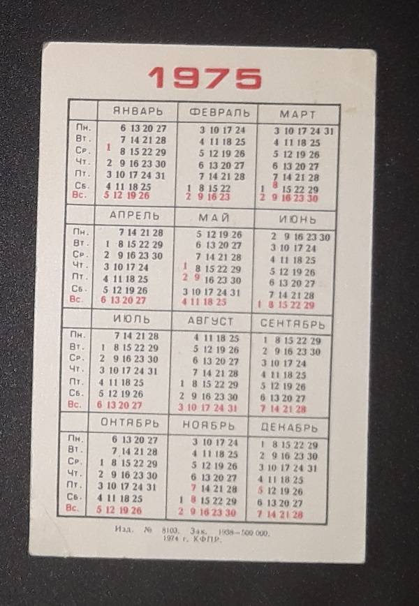 Kalendoriukas CCCP 1975 Draudimas 053