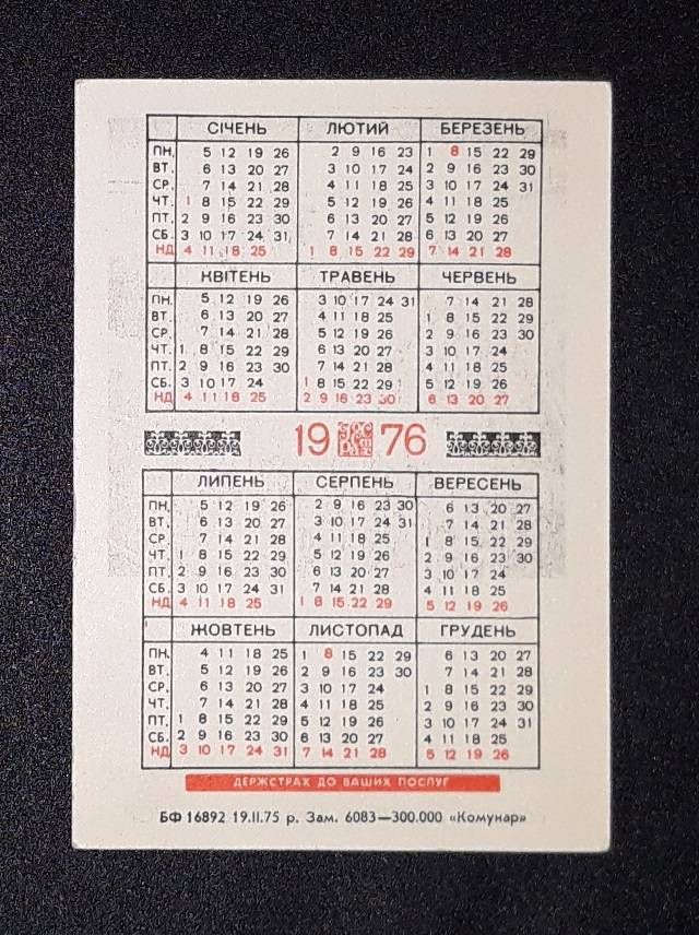 Kalendoriukas CCCP 1976 Draudimas 017-2