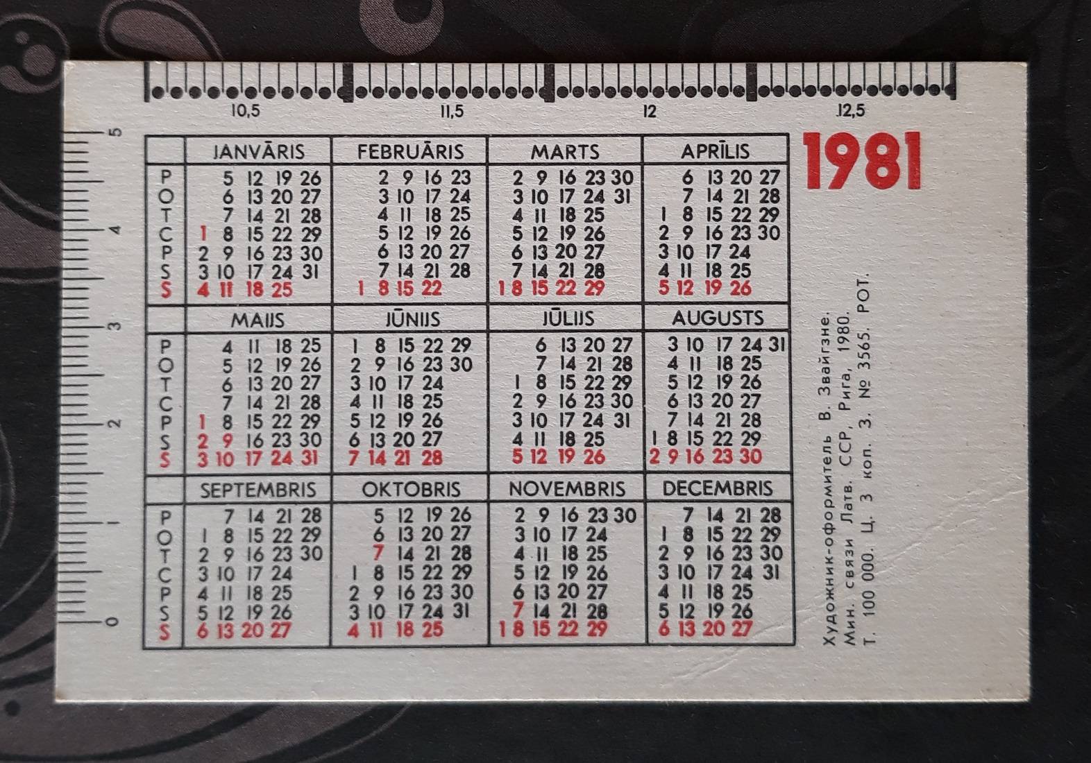 Kalendoriukas CCCP 1981 Filat. WILDLIFE 141