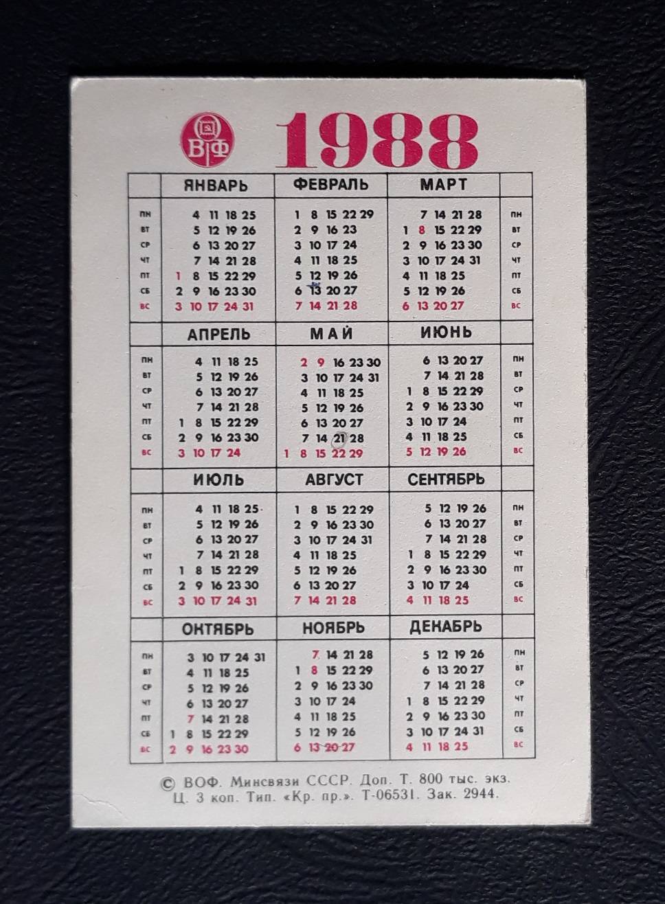 Kalendoriukas CCCP 1988 Filat. WILDLIFE 030