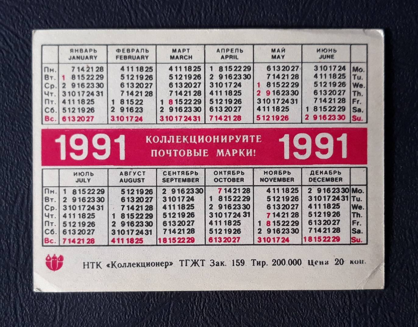 Kalendoriukas CCCP 1991 Filat. WILDLIFE 039