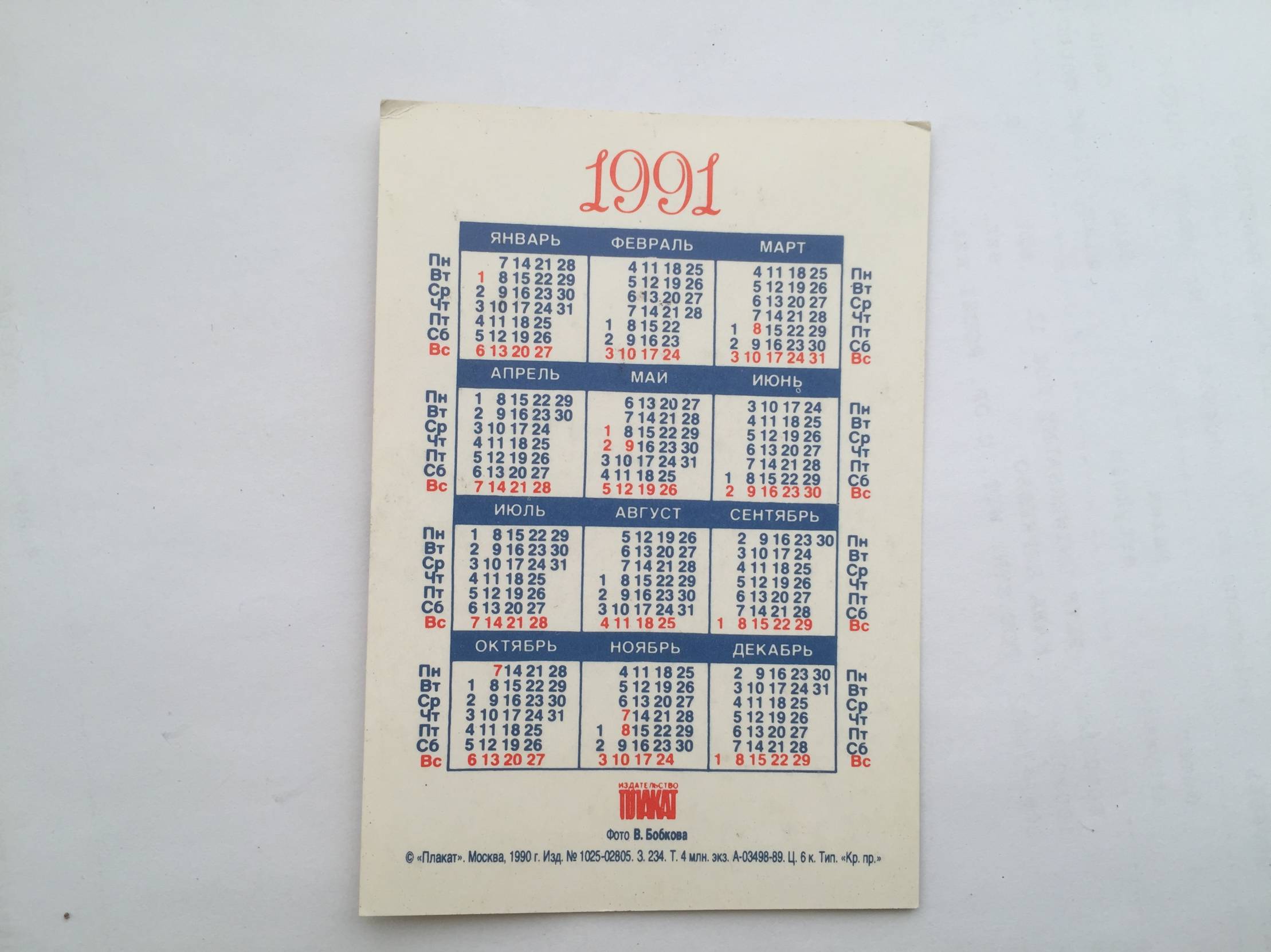 Kalendoriukas 1991m.