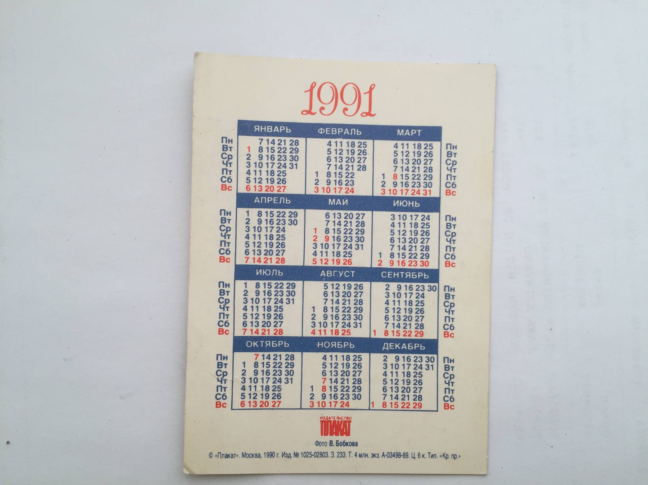 Kalendoriukas 1991m.
