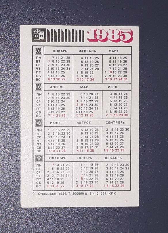 Kalendoriukas CCCP 1985 Atsargiai 133