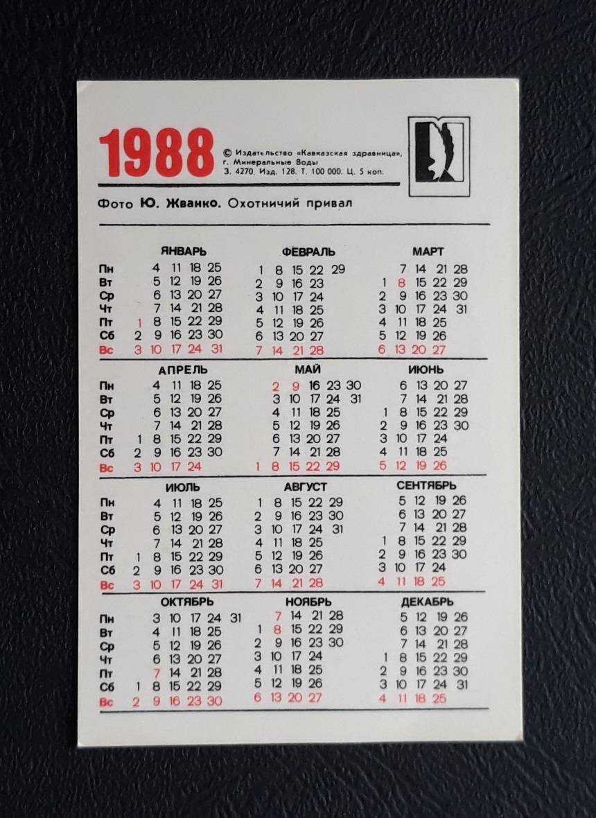 Kalendoriukas CCCP 1988 Medžioklė 071-3