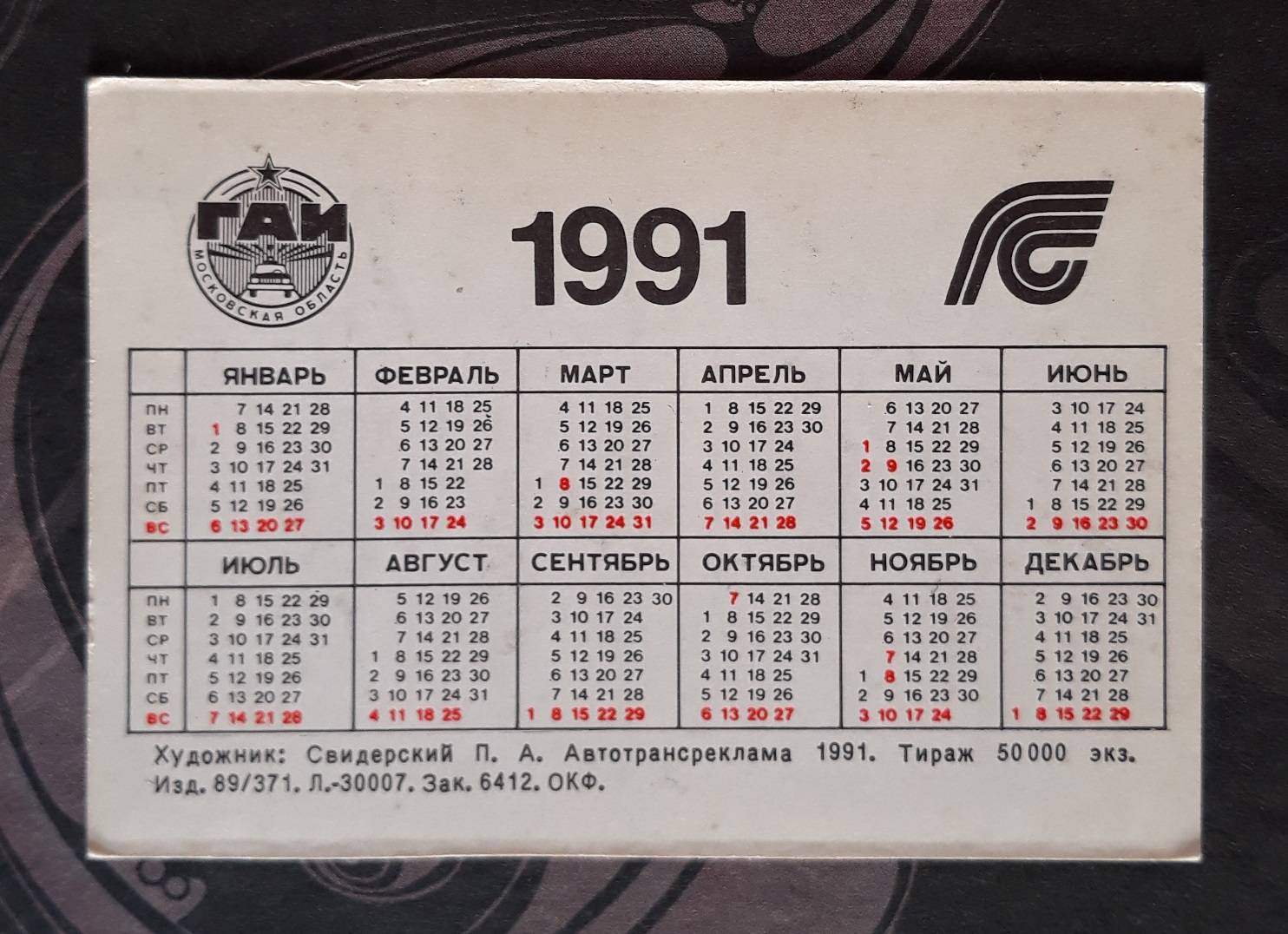 Kalendoriukas CCCP 1991 Vaikiškas 158