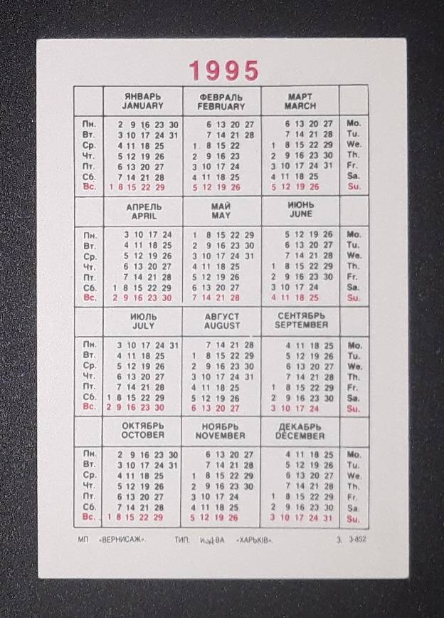 Kalendoriukas Ukraina 1995 Vaikiškas 002
