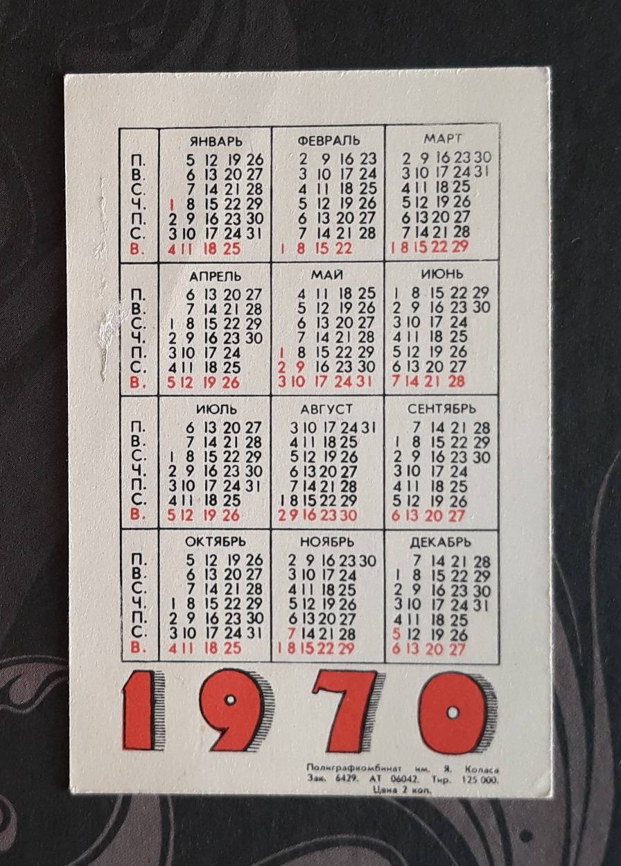 Kalendoriukas CCCP 1970 WILDLIFE Stumbras 3-2