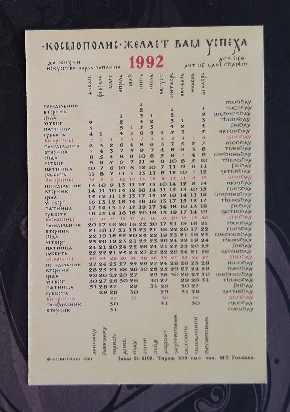 Kalendoriukas Rusija 1992 WILDLIFE 083-3