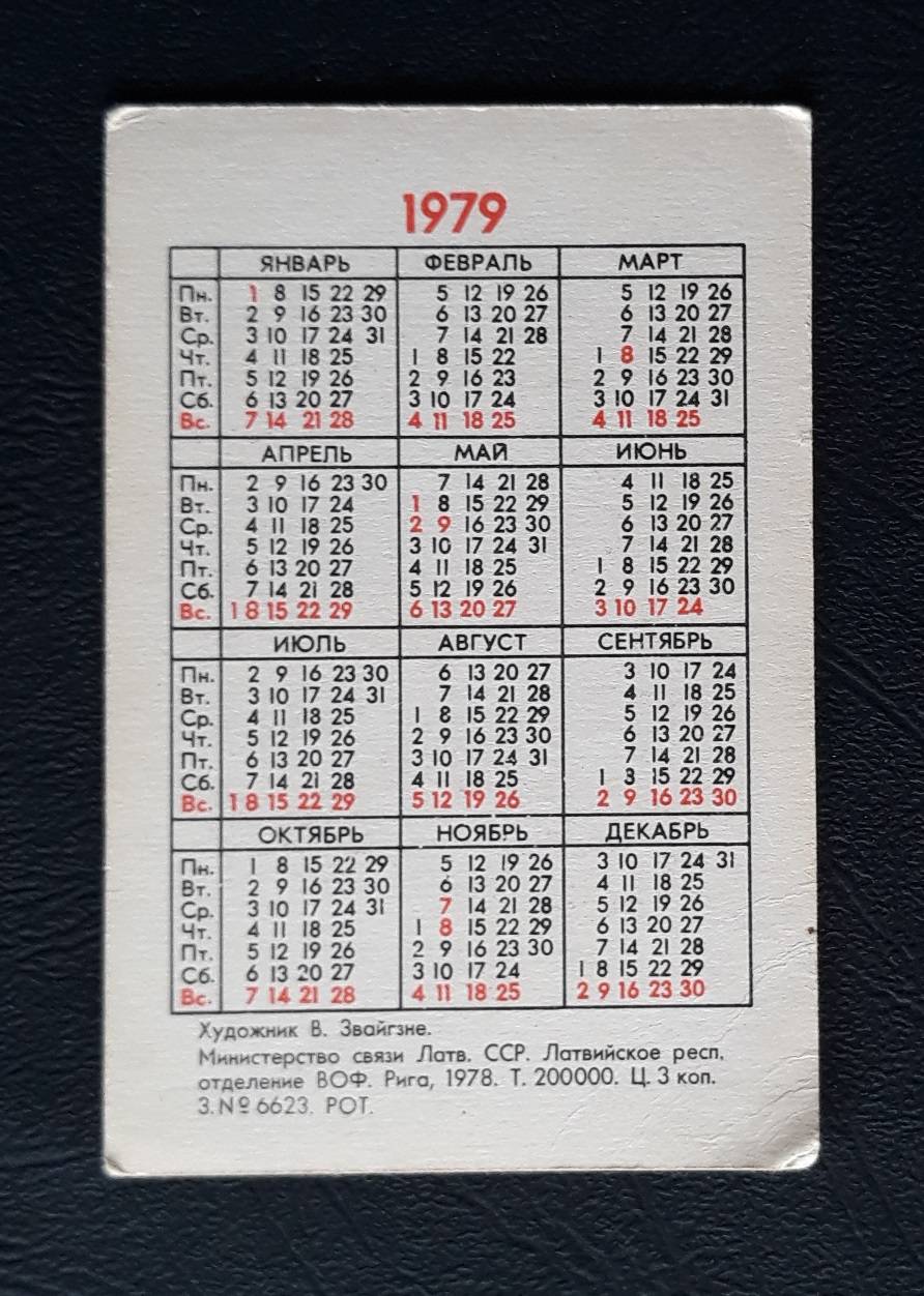 Kalendoriukas CCCP 1979 Filat. Kosmosas 071
