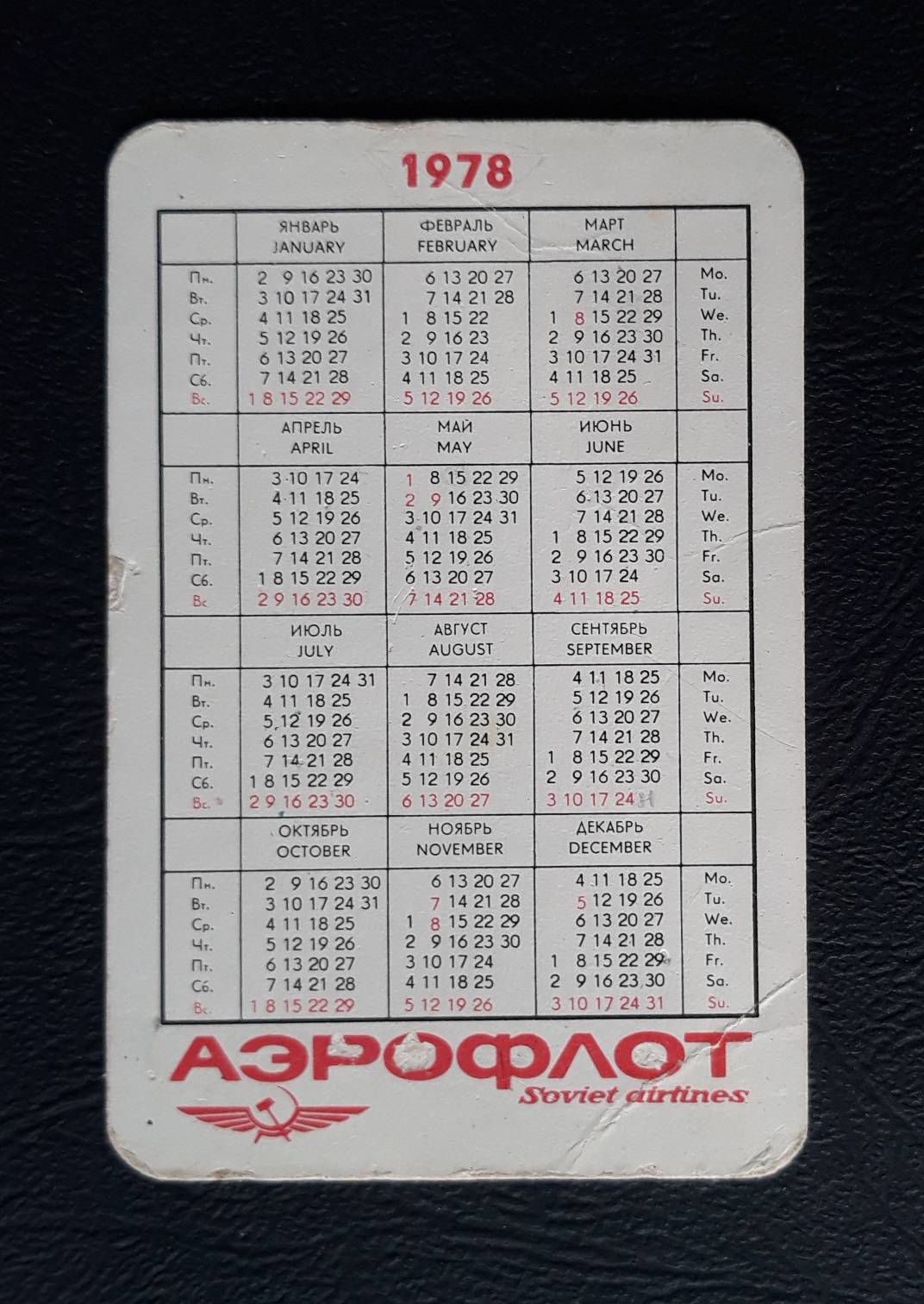 Kalendoriukas CCCP 1978 AEROFLOT 03-2