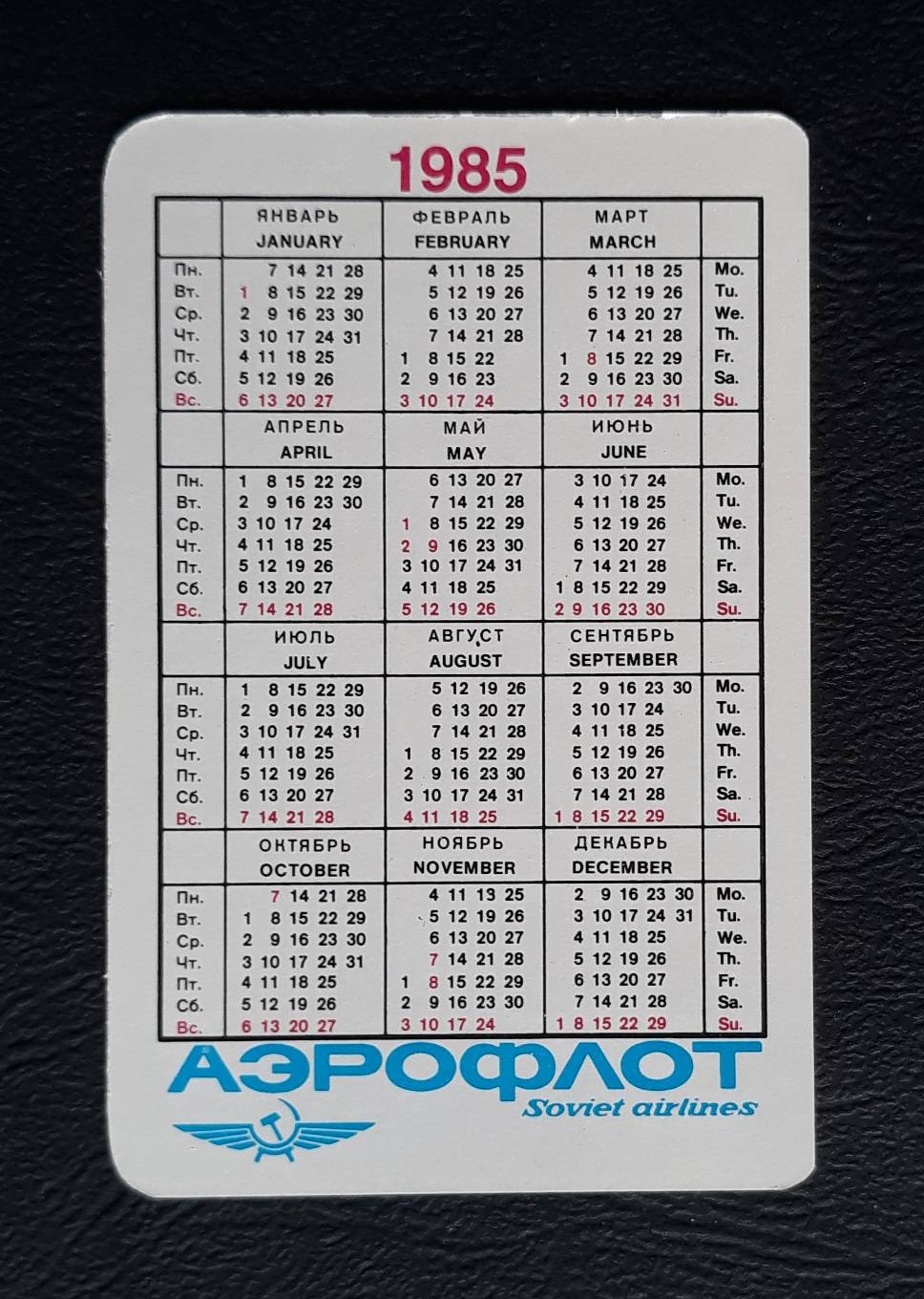 Kalendoriukas CCCP 1985 AEROFLOT 06