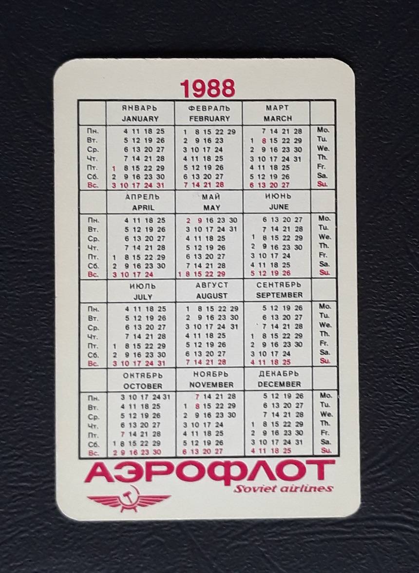 Kalendoriukas CCCP 1988 AEROFLOT 04 Lietuva