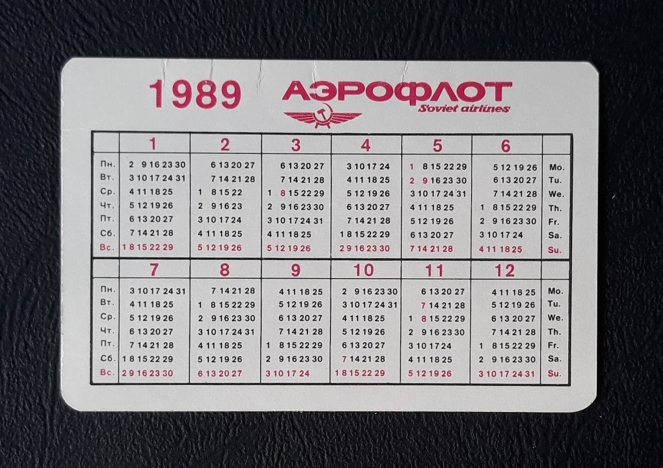Kalendoriukas CCCP 1989 AEROFLOT 03 Aviacija