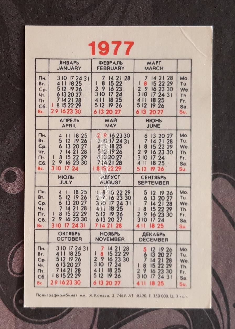 Kalendoriukas CCCP 1977 Baltarusija 049