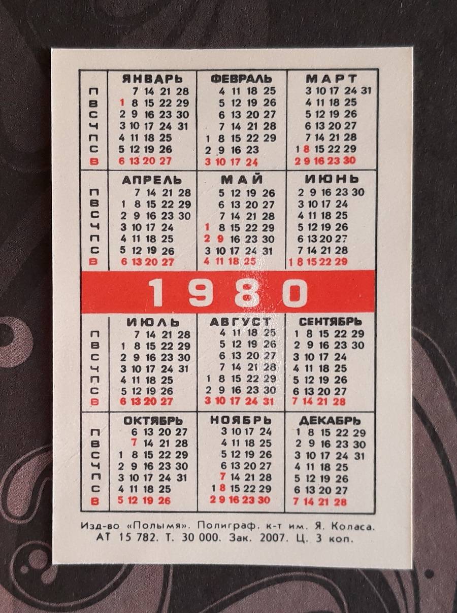 Kalendoriukas CCCP 1980 Baltarusija 136