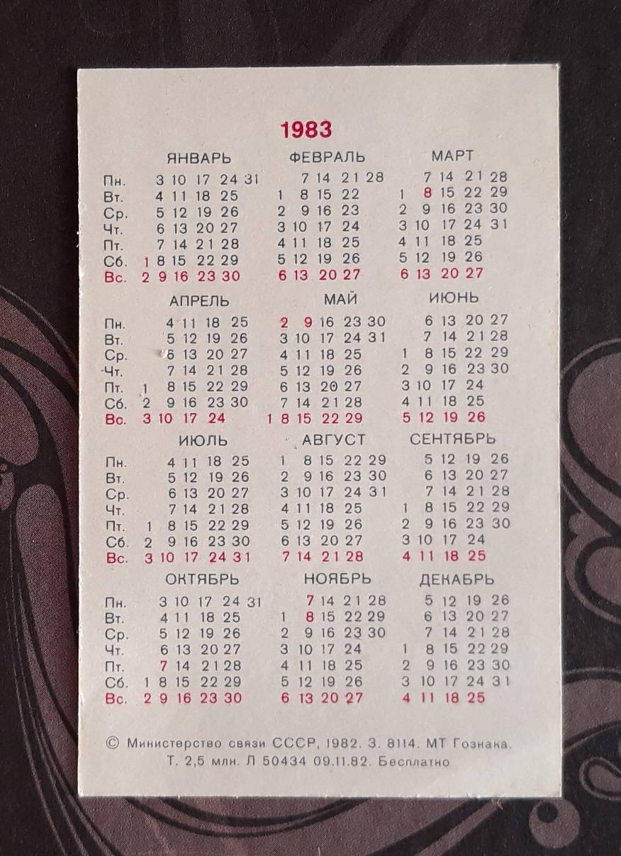 Kalendoriukas CCCP 1983 Paštas 110