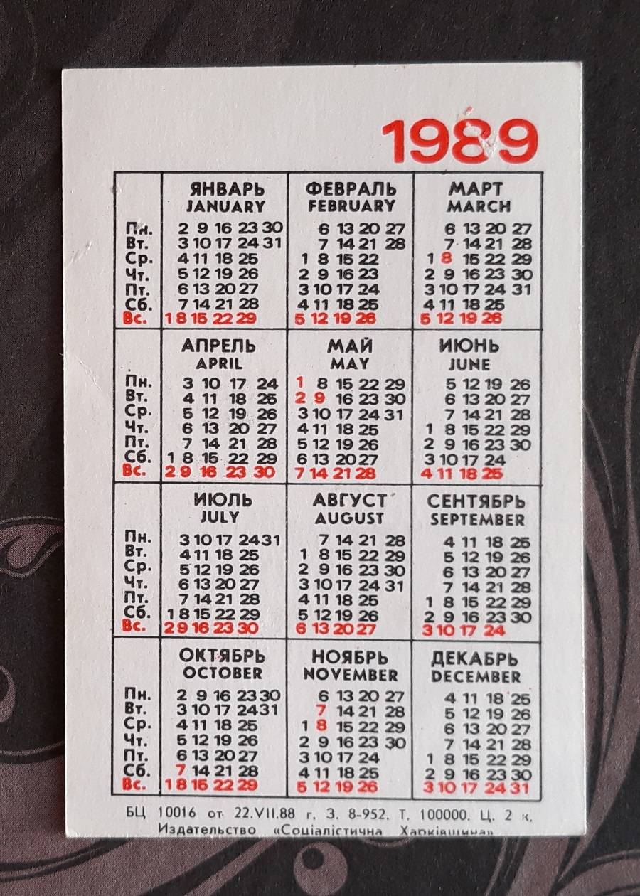 Kalendoriukas CCCP 1989 Automobilis 147