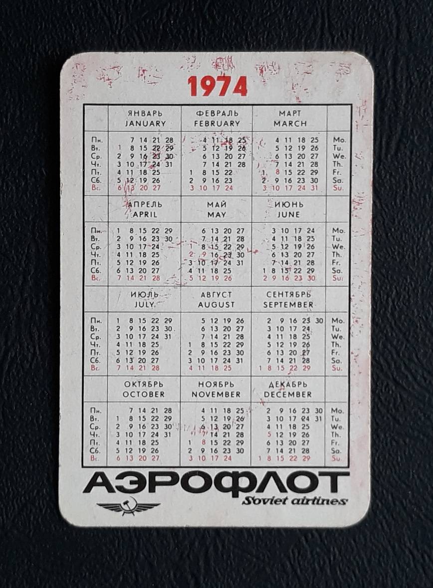 Kalendoriukas CCCP 1974 AEROFLOT 01-2