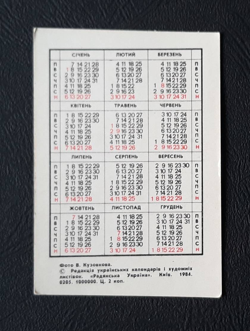 Kalendoriukas CCCP 1985 Tautiniai rūbai 113