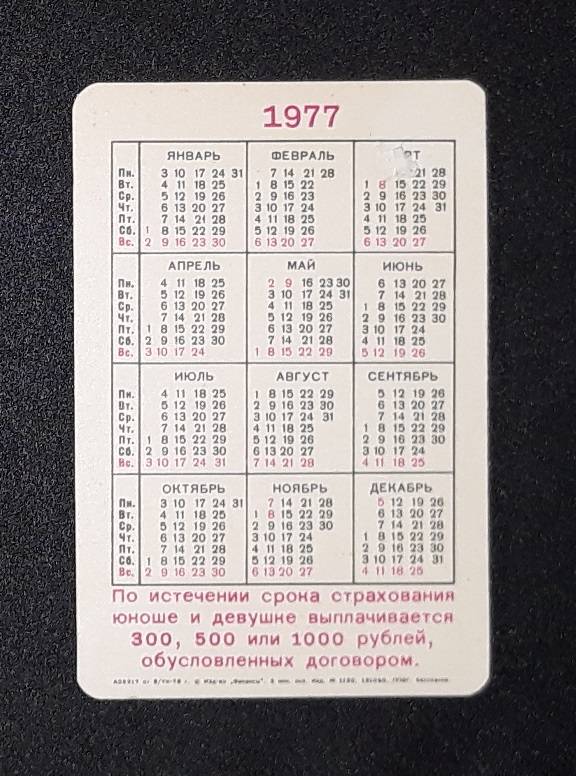 Kalendoriukas CCCP 1977 Draudimas 040-2