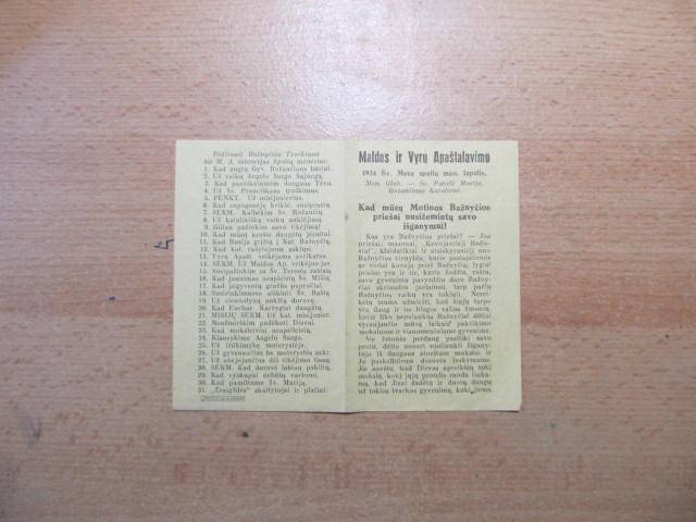 1934 , Maldos ir Vyrų Apaštalavimo ( lapelis )