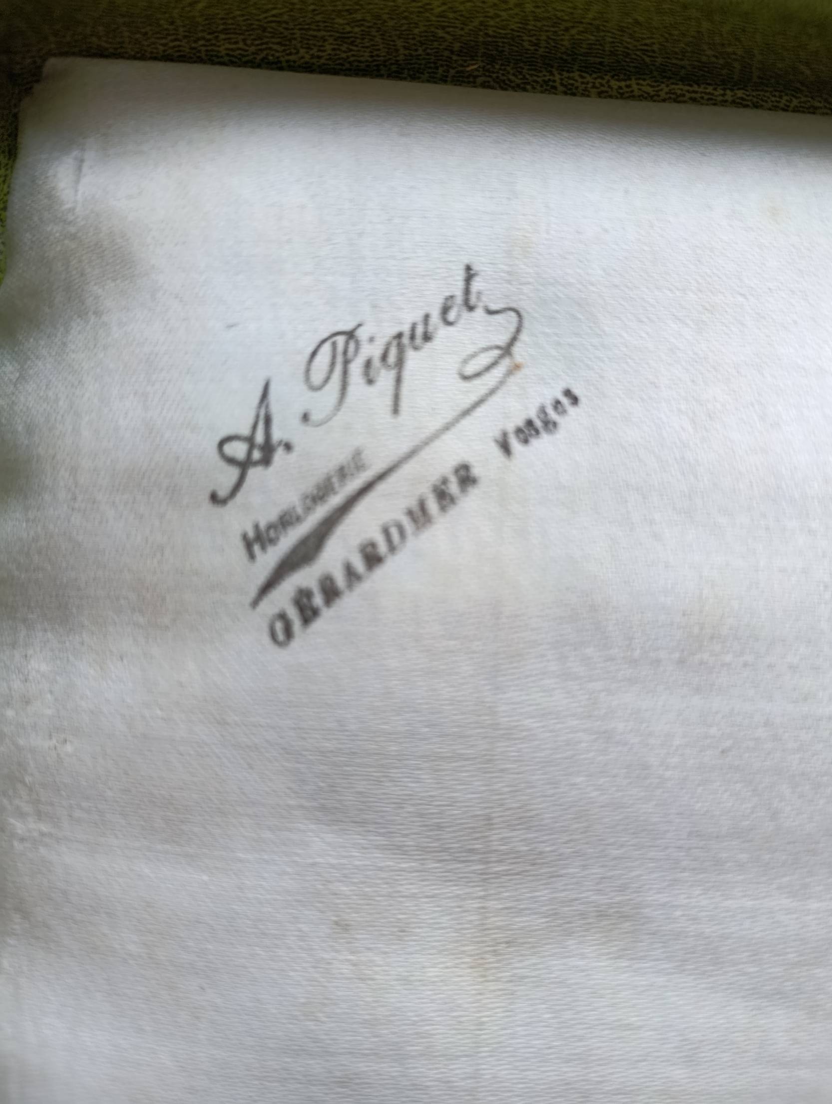 Pardavėjo ženklas: A. Piquet – Horloger Orfèvre, Vosges