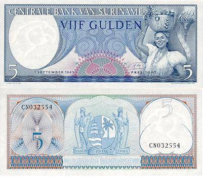 Surinamas 5 guldenai 1963 m., P#120