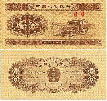 Kinijos LR 1 fenas 1953 m., P#860c