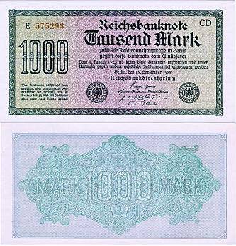 Vokietija 1000 markių 1922 m., P#76c, Unc-