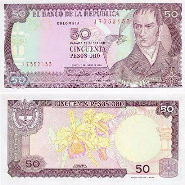 Kolumbija 50 pesų 1986 m., P#425b