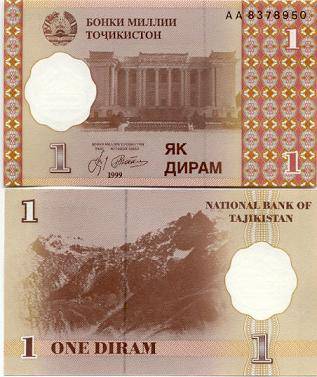 Tadžikistanas 1 diramas 1999 m., P#10a